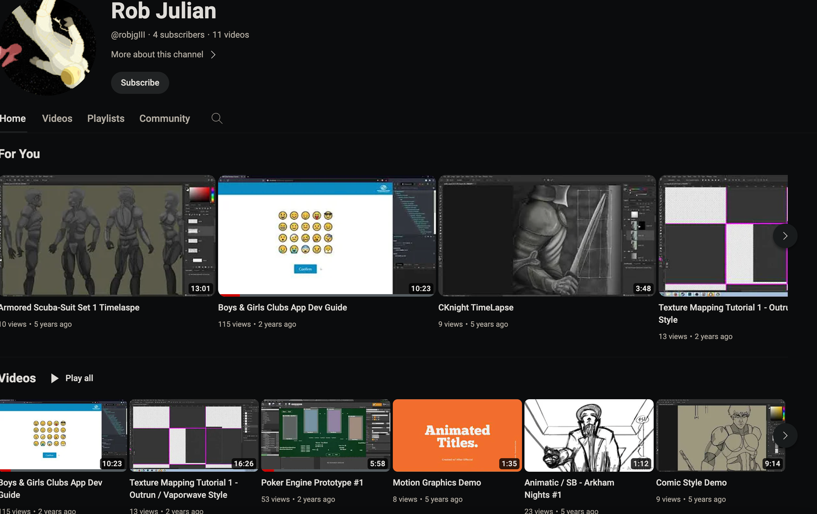 My Youtube Channel containing various examples of my work, from game demos to art time-lapses.