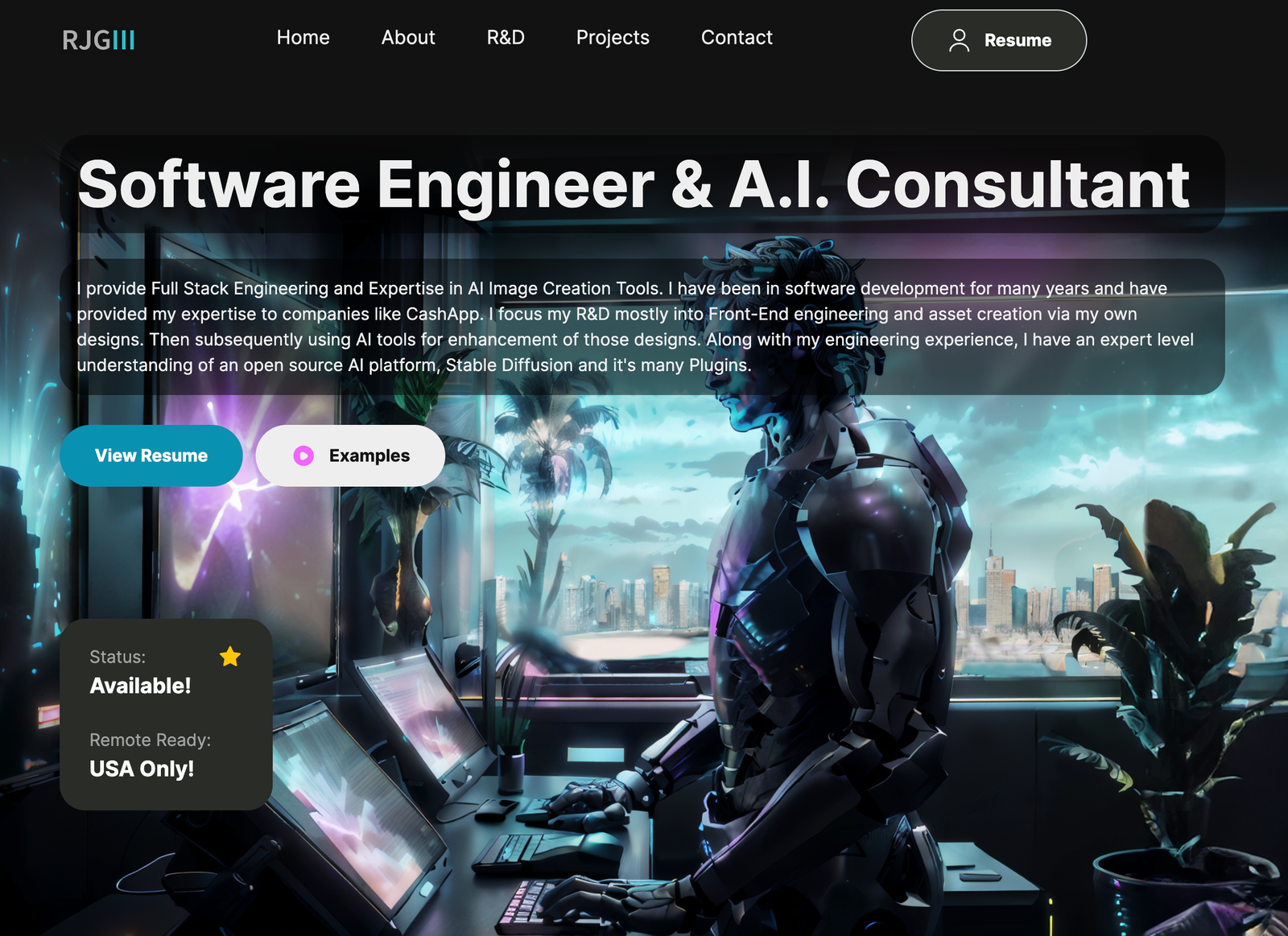 I provide Full Stack Engineering and optional expertise in AI Image Creation Tools. I have been in software development for many years and have provided my skills to companies like CashApp. I focus my R&D mostly into Front-End engineering and asset creation via my own designs. I am currently experimenting with enhancing my art images with exciting new AI tools. Along with my engineering experience, I have an expert level understanding of the open source AI platform, Stable Diffusion and its many plugins.
